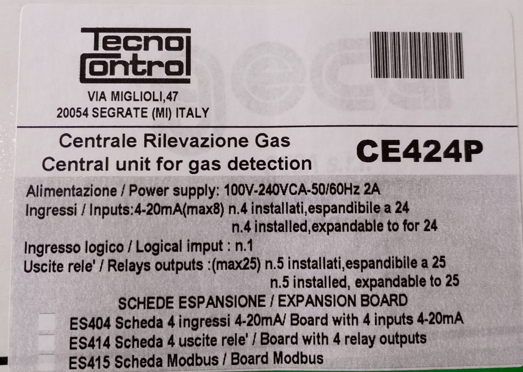 Control unit for max. n.24 gas detectors. It is equipped with 5 relay outputs expandable to 9 with 1xES4014. The control unit is also equipped with one logic input. The big back lighted display placed on the front panel allows the actual visualization in real time of all reading values of the connected sensors. The intuitive keyboard allows in an intuitive way to use the control panel and the programming is facilitated by the self-driving system and by the pre- configuration of our detectors.