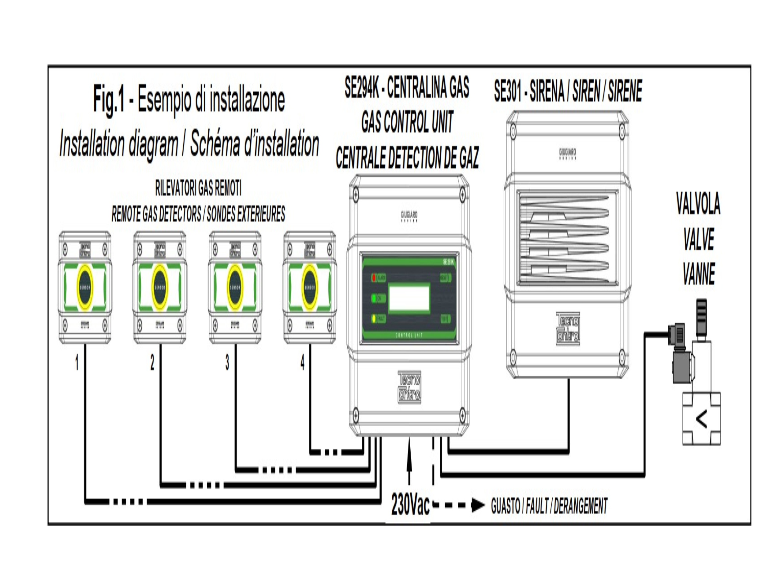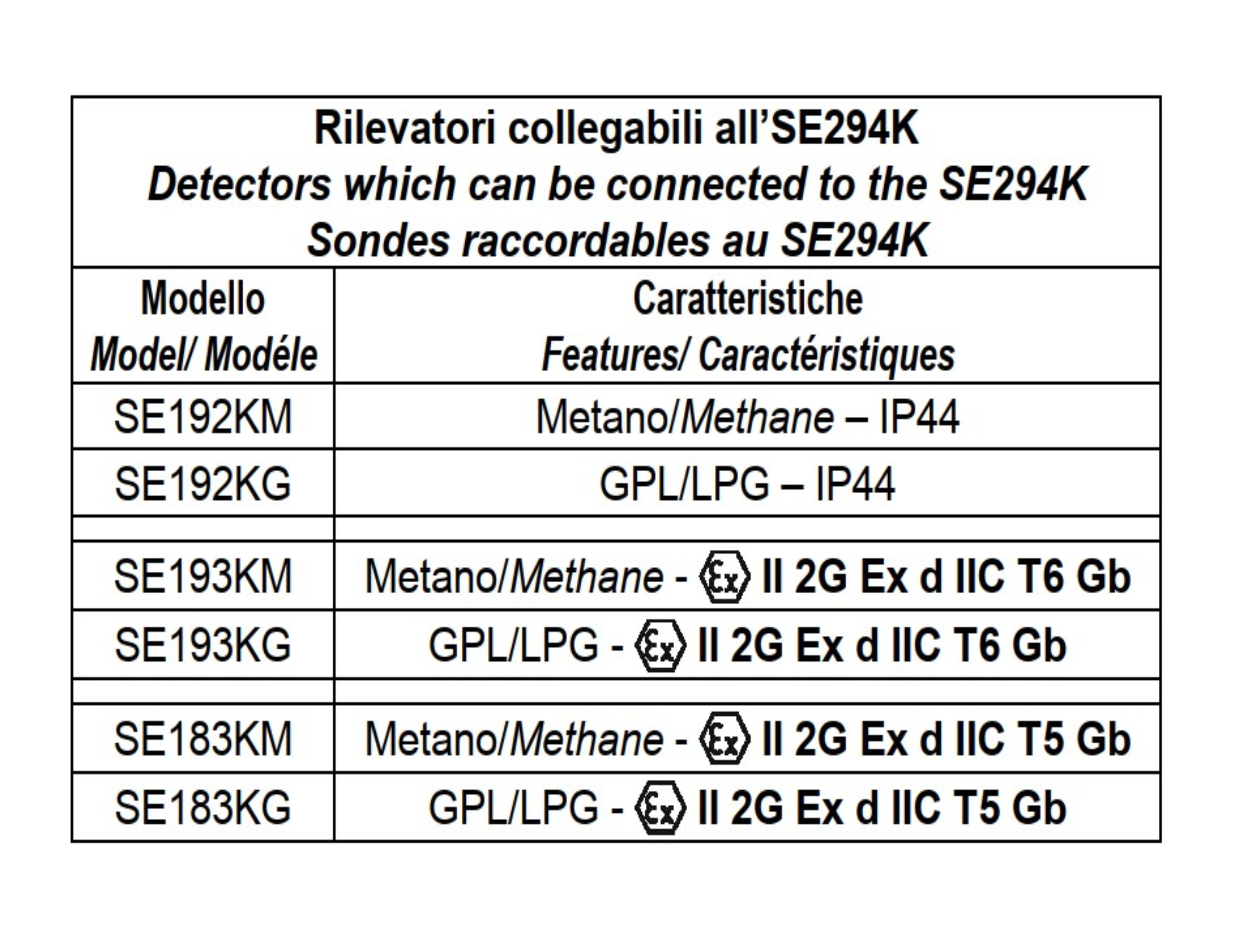The SE294K is a Control unit for heating plants or environments to be protected from possible gas leaks, which can be connected up to 4 remote catalytic detectors for flammable gases. It can be connected to the following detectors: