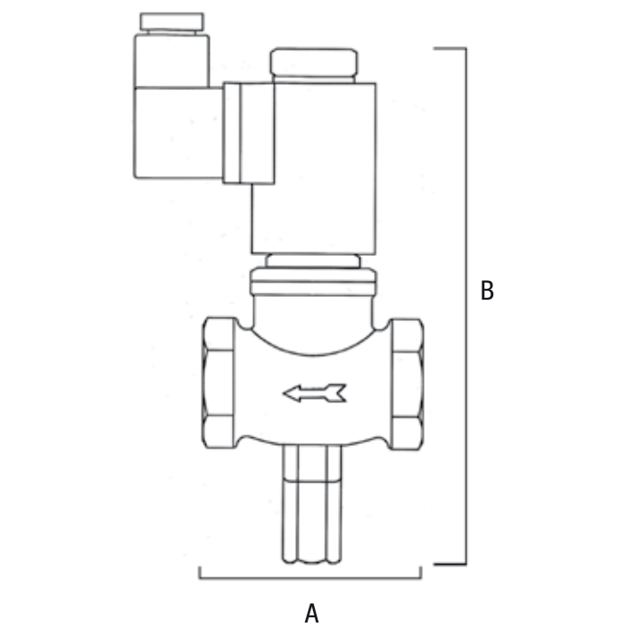 The electro-valve is normally located after a filter, upstream of the regulation apparatus and preferably outside the measurement zone. It has been installed with the arrow stamped on the body turned towards the user appliance. To reset the solenoid valve, check that the coil is receiving current and pull the reset knob after having unscrewed the protection cap. Screwed it when the operation is finished.