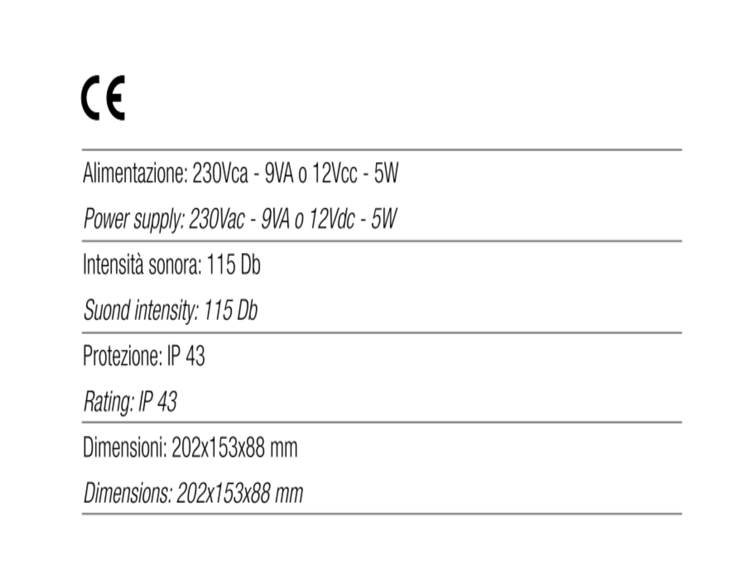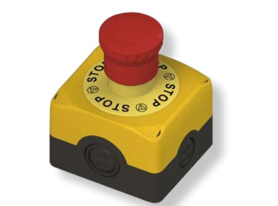 Emergency push button in self-extinguishing shock-proof polycarbonate with double insulation, UV-resistant and glass fibre reinforced.