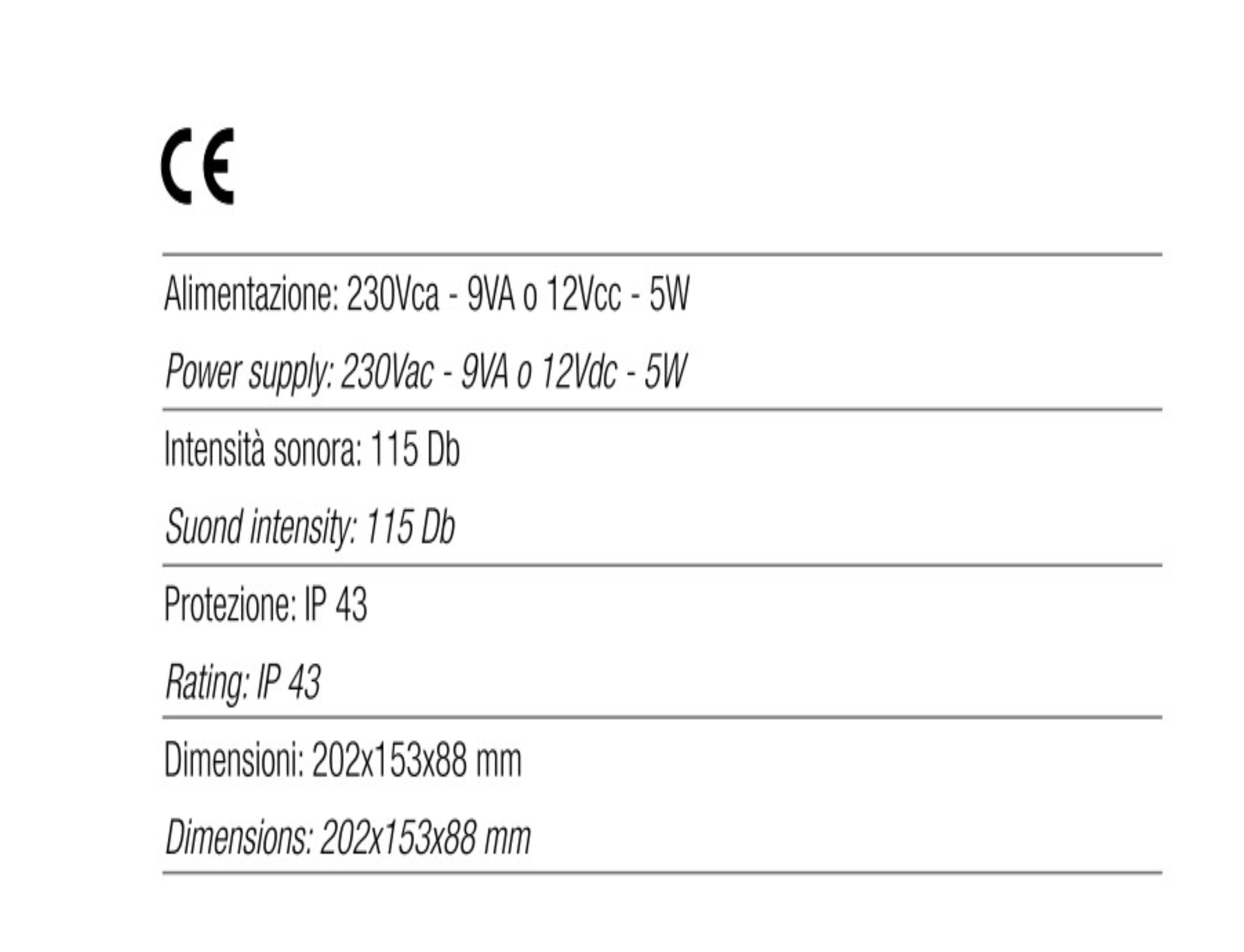 The SE301A model is a siren, with an intermittently acoustic signal with intensity of 115 dB and with a red flashing LED light. The SE301A can be connected to an alarm relay with normally open contact. It can be powered at 230V AC or at 12VDC. The sound can be silenced for 10 minutes and leave only the active optics.